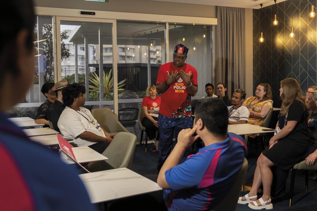 At the 2025 Rotary Zone 8 Conference, held on the Gold Coast 31 October to 2 November, something truly special happened. Rotary International President-elect Yinka Babalola asked a simple question: “Do you think we can bring all of the under 45s together for a conversation?” Of course, the answer was yes, and less than 24 hours later, around 25 Rotaractors and young Rotarians were in a room with Yinka for an inspiring hour-long conversation.