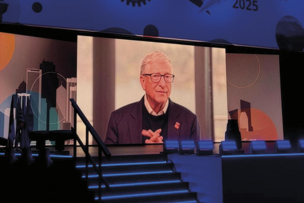PICTURED: Bill Gates appeared via video link at the 2025 Rotary International Convention in Calgary to announce a renewed partnership with Rotary to end polio.