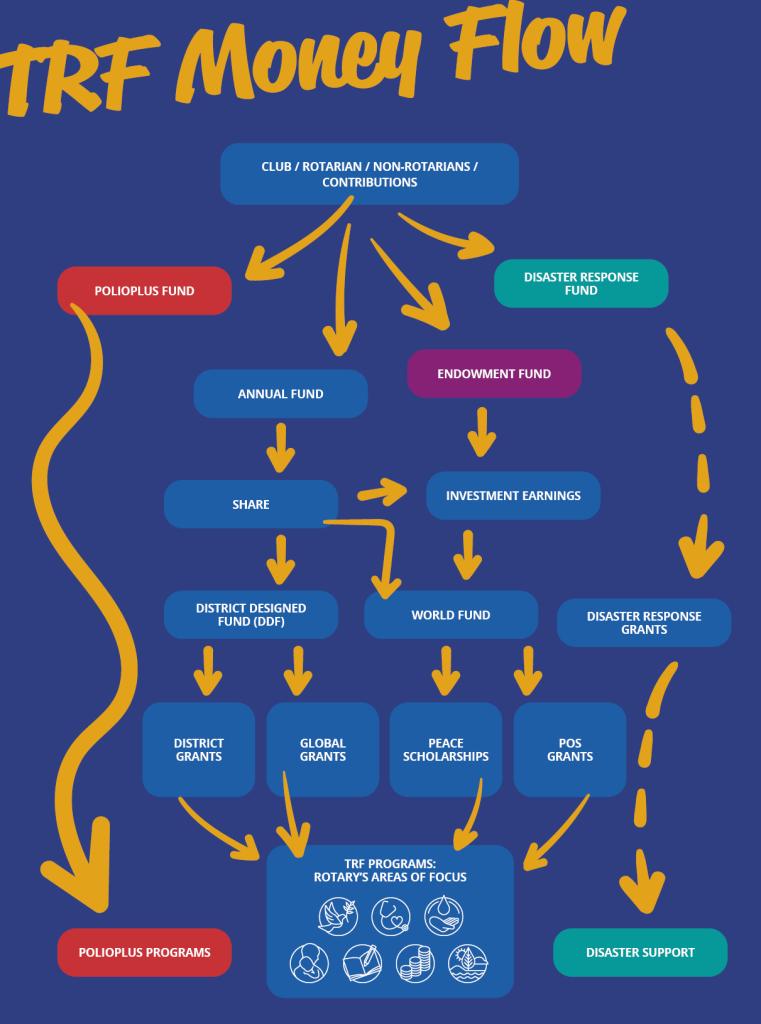This machine has been designed to provide efficiency and effectiveness in receiving money, and equally in providing grants through The Rotary Foundation. This structure can look complex, but it depicts perfectly the dual nature of our Foundation.