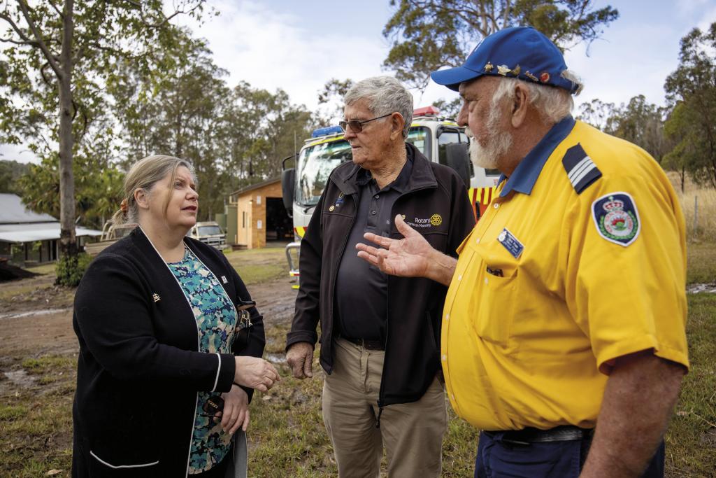 PICTURED: Members from the Rural Fire Service and Bobin residents talk after an evacuation and fire protecting training in Bobin, NSW. Members of the Rotary Club of Taree on Manning and the New South Wales Rural Fire Service in Taree help the communities of Bobin and Caparra prepare for bushfires by providing evacuation and fire protection training, erecting an automated sign accessible to both communities that indicates the level of fire danger, and installing tanks so bushfire brigades have water supplies. This project is supported by the Rotary Clubs of Taree on Manning, NSW, and Windsor-Roseland, Canada, and by a Rotary Foundation global grant.